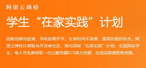 阿里云最近推出了一个特别特别棒的学生“在家实践”计划!(划重点:“学生在家实践计划”,通过学生认证后才能领取)。