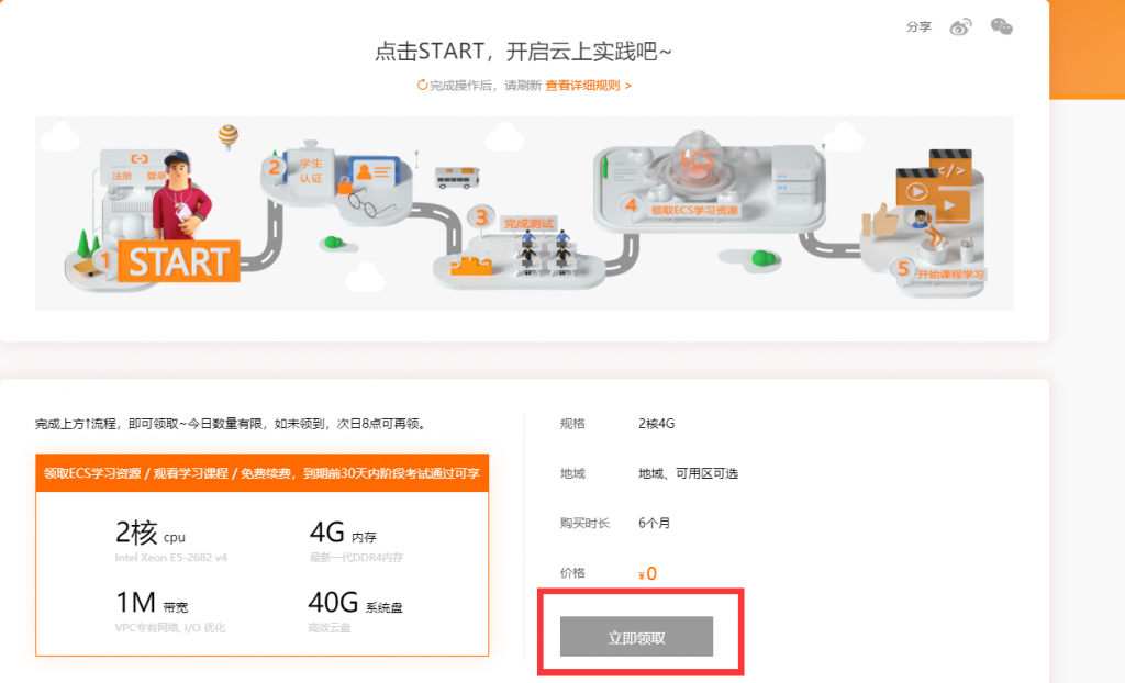 1.目前账户上没有ECS实例的学生用户才可以领取。